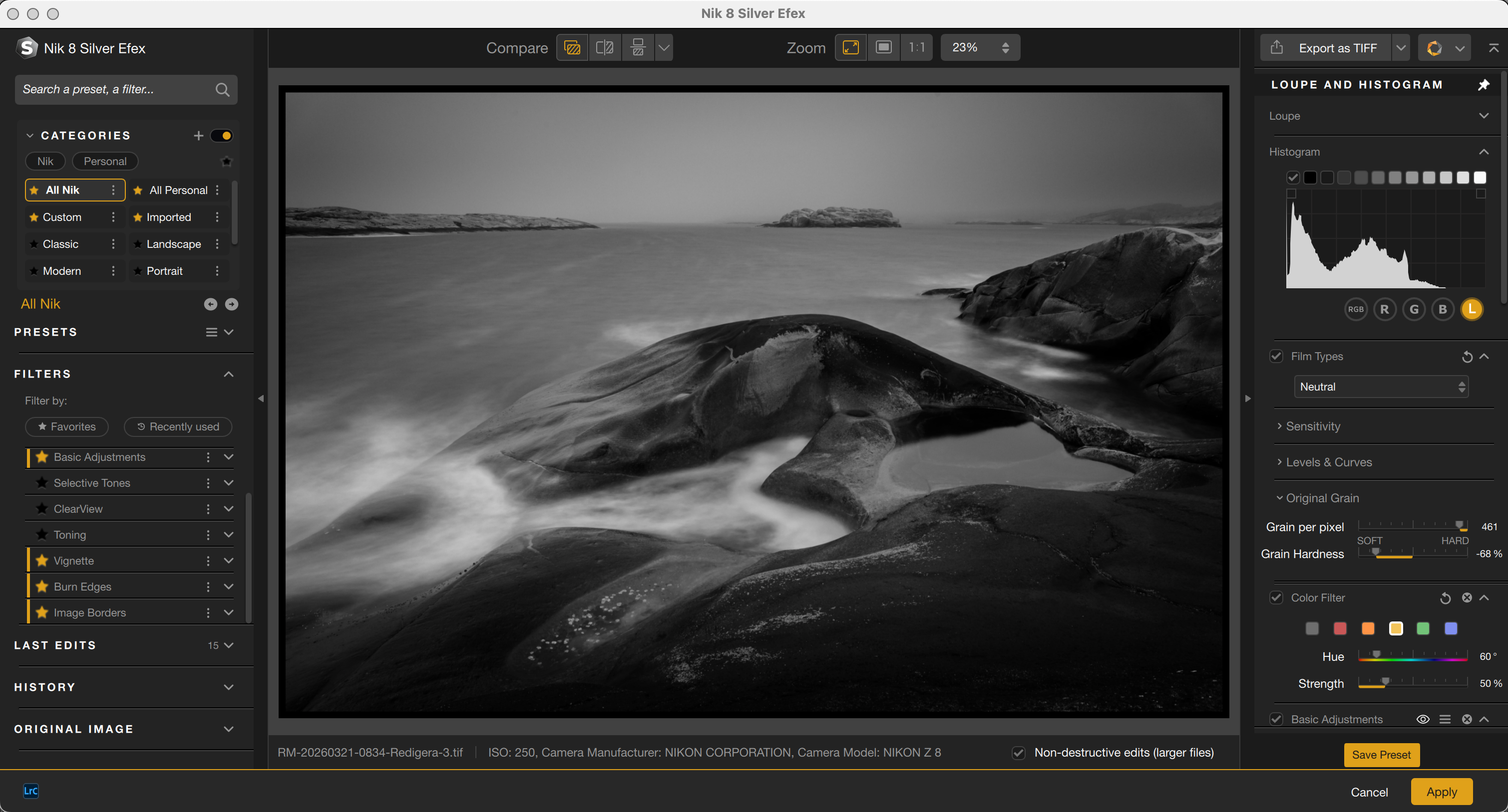I den här kursen visar jag hur jag arbetar med svartvitt i två olika program: i Lightroom och i Silver Efex. Båda är kompletta sätt att arbeta – där bilden kan gå hela vägen från start till färdigt resultat.